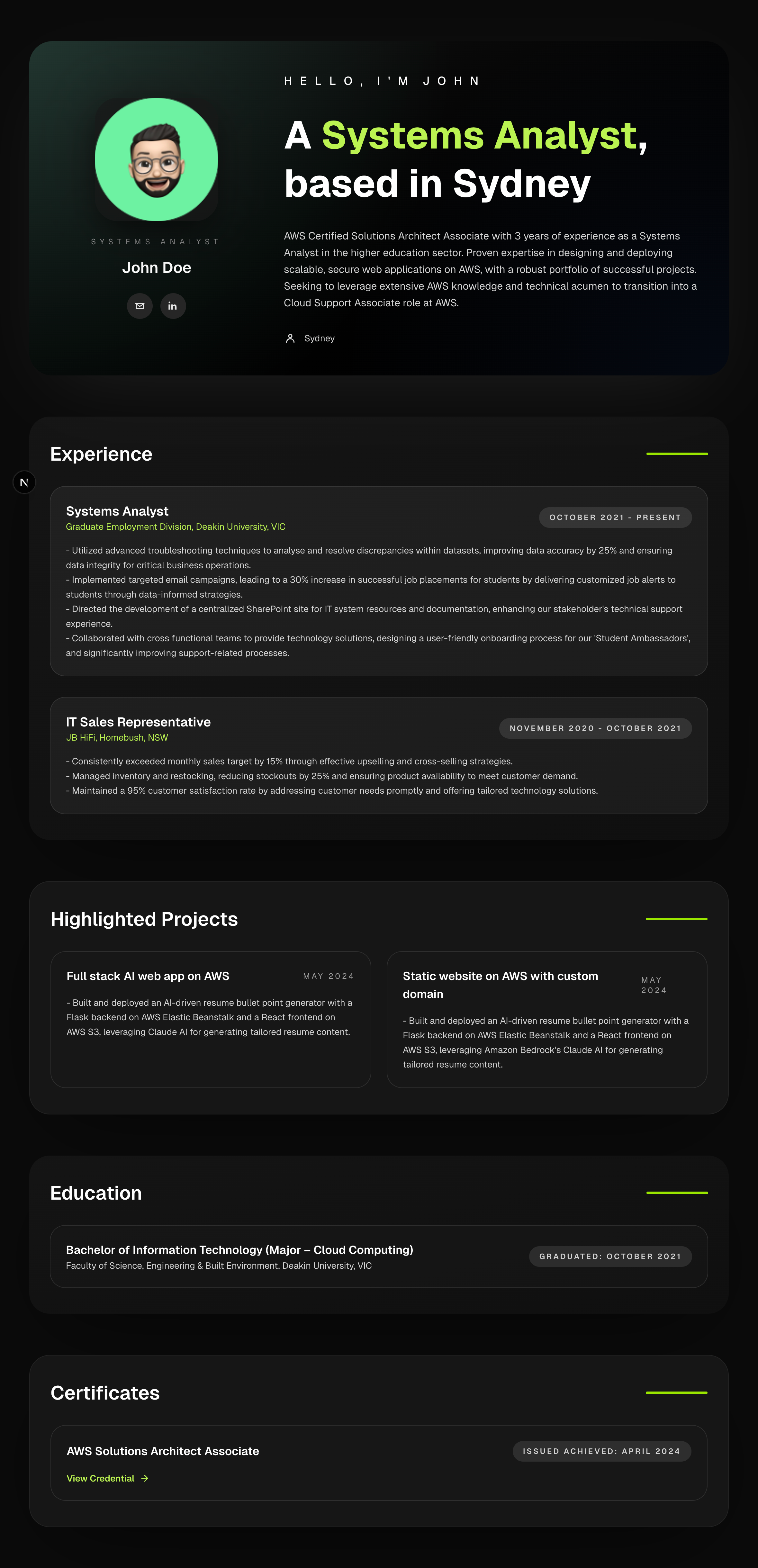 "I landed 3 interviews in the first week after publishing my portfolio. The AI extraction was spot-on and saved me hours of manual work."